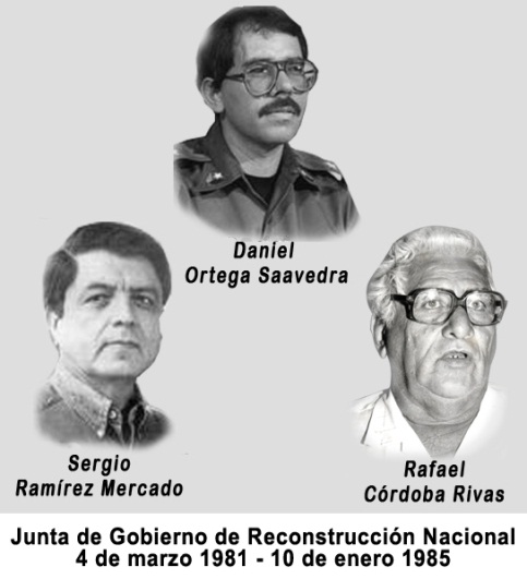 JUNTA DE GOBIERNO DE RECONSTRUCCION NACIONAL.- Daniel Ortega Saavedra.- Sergio Ramírez Mercado. - Rafael Córdova Rivas.