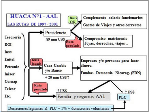La corrupción era el eje central de las noticias en los principales medios. De tal forma que en una presentación pública en el Centro de convenciones Olof Palme la tarde del miércoles 7 de agosto de 2002, el Procurador General de la República (en funciones por enfermedad del Procurador Herdocia), el doctor Francisco Fiallos reveló el diseño, la ruta, los mecanismos y los objetivos utilizados durante la administración del doctor Alemán para el desvío de fondos del Estado hacia fines privados. Y según su presentación, La Huaca resultó ser la malversación de fondos del Estado por mil millones trescientos noventa y un mil, ochocientos treinta córdobas con noventa y seis centavos (1.000.391.830,96) 1.