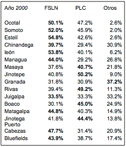 29 Cuadro resultados elecciones municipales en Managua 2000.