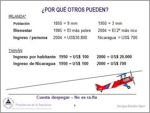 • El milagro irlandés era el mejor ejemplo para Nicaragua porque a pesar de su historia de constantes guerras intestinas, logró su hazaña. Según Bloomberg: “Los libros de economía deben concluir diciendo: 'y ahora estudien a Irlanda'”.