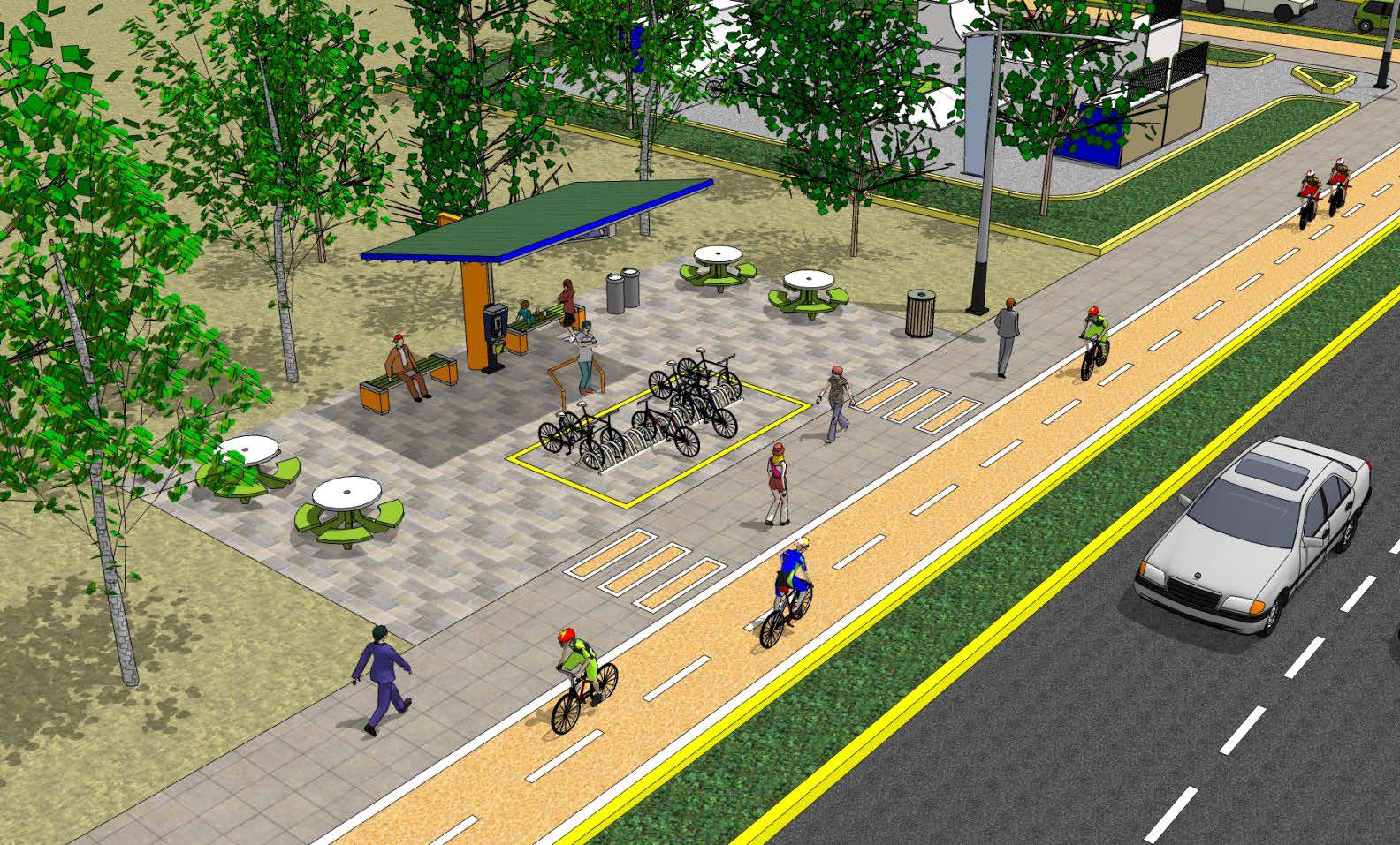 - El programa de construcción de ciclovías integradas en la red de transporte público.