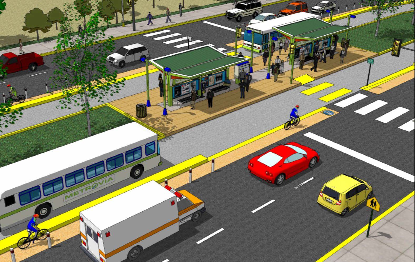 Si a esto sumamos el que la primera fase de Metrovia circula a lo largo de la parte de la ciudad más afectada por el terremoto de 1972, el sistema se convierte además en la plataforma perfecta para volver a desarrollar el centro histórico Managua de una manera ordenada, habitable y con más espacios públicos. Con este mismo objetivo ya existen proyectos por parte de la Alcaldía de Managua para desarrollar esta zona urbana.