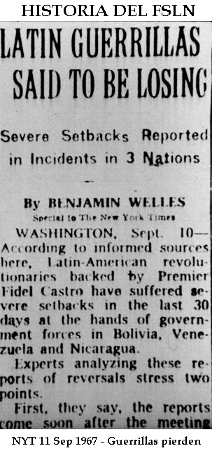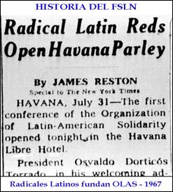 En Julio de 1967, los sandinistas y otros rojos latinoamericanos se reunieron con Fidel en La Habana y se organizaron en OLAS (Organización Latino Americana de Solidaridad), para diseñar toda una estrategia que confrontaría a los Estados Unidos con una serie de guerrillas en América Latina. Ya para octubre de ese año, una serie de guerrillas habían comenzado y fracasado. El Che Guevara fue muerto en Bolivia, los rojos habían sido derrotados en Venezuela y los sandinistas en Pancasán, Nicaragua.
