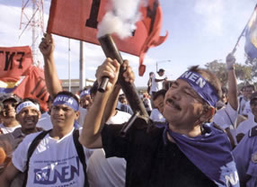 Bolaños era también acosado por el FSLN que movilizó sus fuerzas callejeras para advertirle que no estaban de acuerdo con el veto, mucho menos que permitiera se alcanzara un acuerdo político entre Bolaños con los diputados del PLC. Para encabezar las protestas, el FSLN usó a los estudiantes universitarios, que se manifestaron de forma violenta.