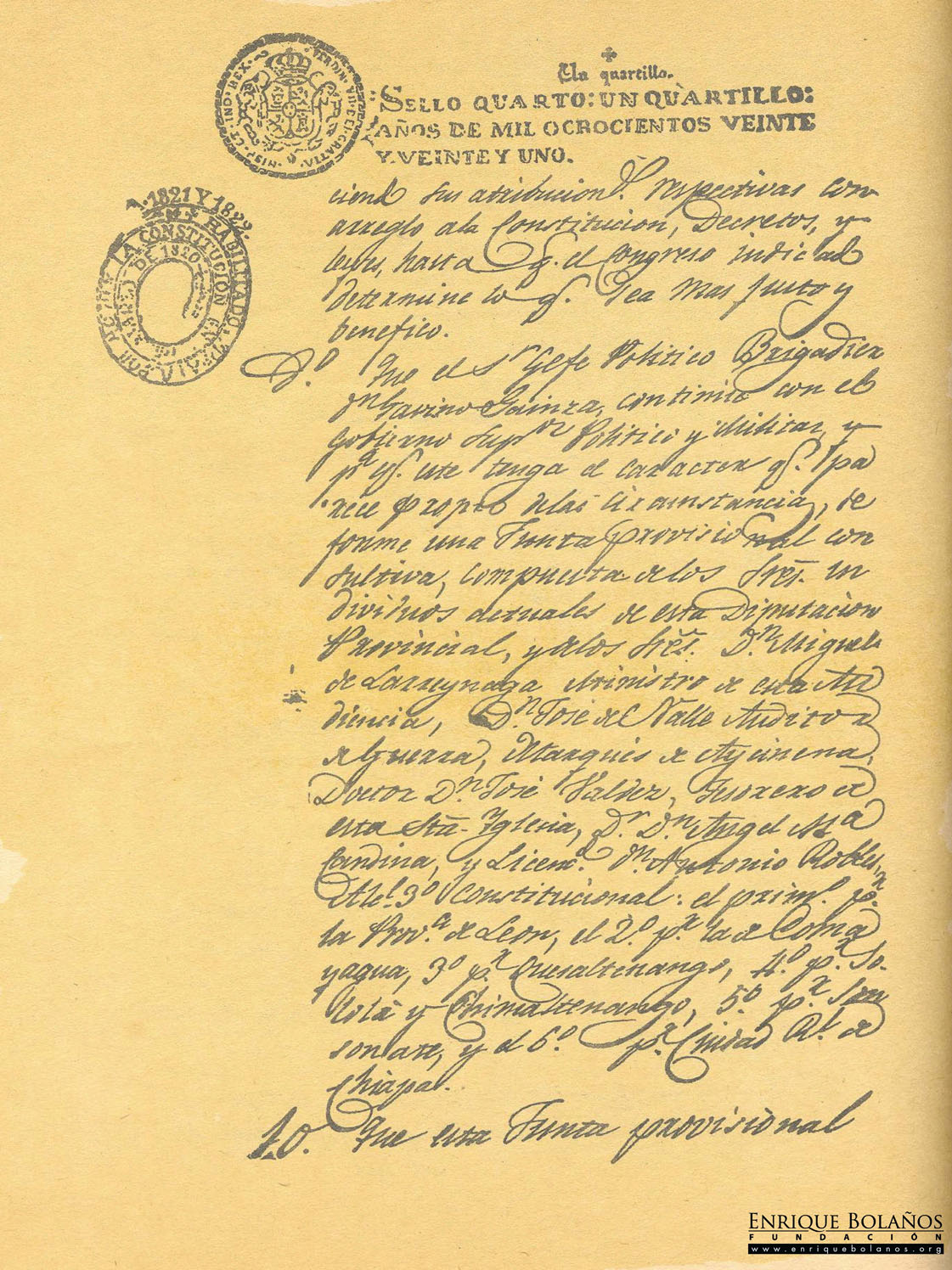 El Congreso nombra al Presidente del Consejo Representativo, don Francisco X. Rubio, asumir la jefatura del Estado interinamente.31 A.Vega B