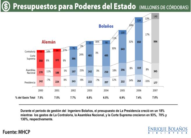 • Además, quedaron en ejecución 175 millones de dólares adicionales como donación de la Cuenta Reto del Milenio de Estados Unidos, etc., etc. Dejamos, pues, la mesa servida como decía una de mis tías tatarabuelas ─Dominga Bolaños de Zelaya─ “la política es como un banquete, unos sirven la mesa y otros se sientan a comer”.