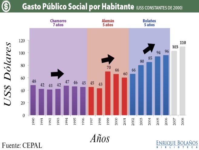 1. Mejorar resultados económicos: recuperar el acuerdo con el FMI; disciplinar lo fiscal; estimular inversiones productivas; liderar los TLC; obtener el perdón de la deuda externa (la HIPC)… “Así como sin maíz no puede haber tortilla, sin recursos (dinero) no puede haber escuelas, salud, reducción de la pobreza, etc.”.