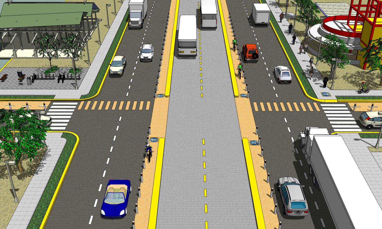 - El programa de construcción de ciclovías integradas en la red de transporte público.