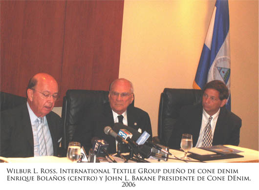rancelario Preferencial, en español. Esto atrajo mucho interés y permitió atraer la inversión de US$100 millones de dólares de "Cone Denim" en Ciudad Sandino, que incluía la fabricación de tela de blue-jean con algodón nicaragüense, que sería transformado en pantalones en dos grandes fábricas adjuntas, que iniciarán con 800 empleos y llegarían a generar 20 mil empleos. Ya estaban por firmar con GuatemalaPruebas Algodon cuando el Presidente Bolaños se dio cuenta y tomó un avión para ir a convencerlo y afortunadamente logró firmarlo para Nicaragua, hecho también que estimula la necesidad de volver a sembrar al menos 20 mil manzanas (14 mil Has.) de algodón.